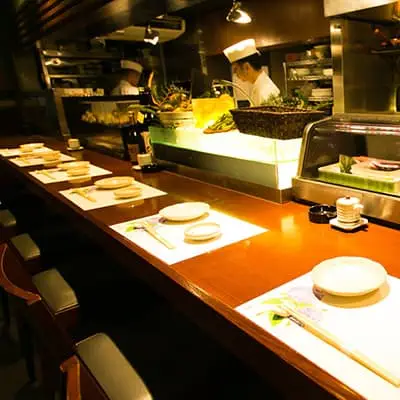 生簀に泳ぐ新鮮な魚をすぐさばくから新鮮さが違う!!お洒落なカウンター席はデートにも…とれたて野菜、鮮魚を目前に2人の会話にも花が咲く…匠がもてなす和創作料理を楽しみながら、2人の距離を縮めよう…